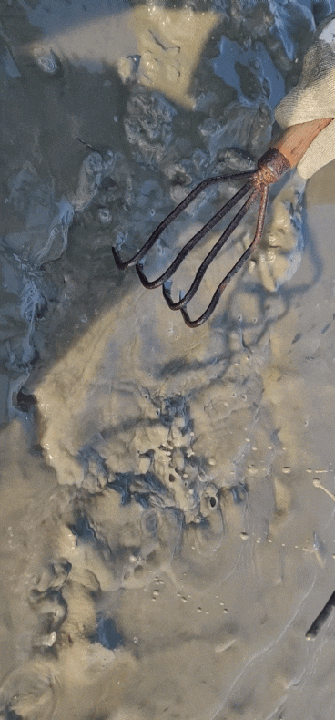 뻘을 두 번 들어내고 손을 넣어보면 엄청 큰 조개가